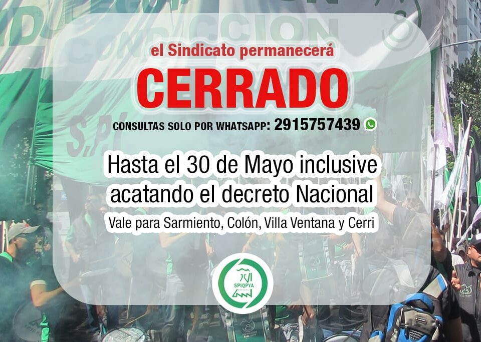 Se comunica a todos los afiliados al SPIQPyA, que el SINDICATO permanecerá cerrado hasta el 30 de Mayo inclusive acatando el decreto Nacional El Sindicato de Personal de Industrias Químicas Petroquímicas y […]